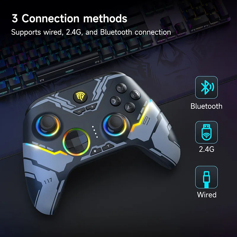 Three-Mode Connection: Supports three connection methods: Bluetooth, wired, and 2.4G. Players can choose the connection method that suits them.